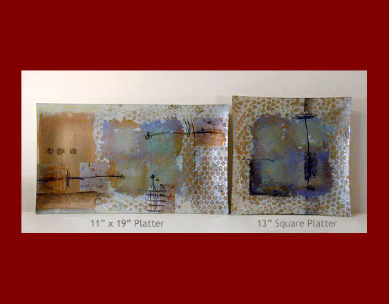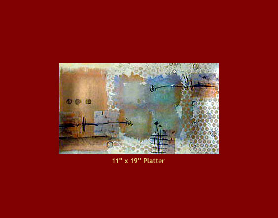 Blues and bronzes express a crisp layering of pattern and soft fringes of shapes. This design was created at the same time as "Area Shift", and they are frequently paired. | ||||||||||||||||||||||||||||||||||||