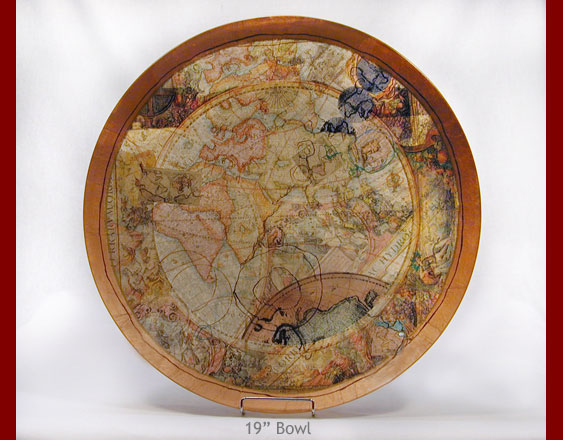 Translucent sepia & sienna toned map design with green, gold, bronze and rose-toned elements. Carefully placed lines and compass marks in subtle tones and colors. Copper rim. | ||||||||||||||||||||||||||